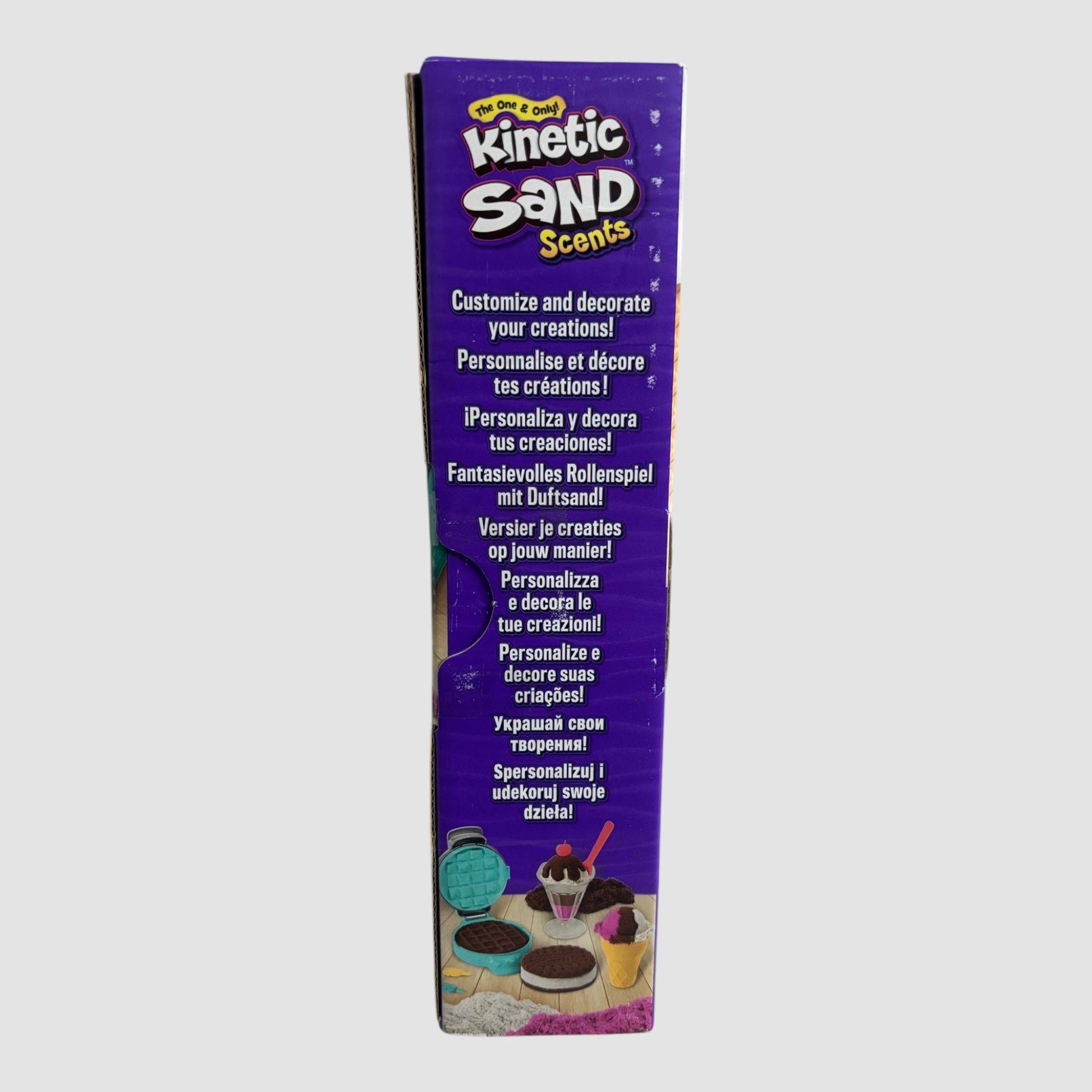 Kit de areia mágica Kinetic Sand Scents para criar gelados. Inclui vários tons de areia e acessórios para modelar.