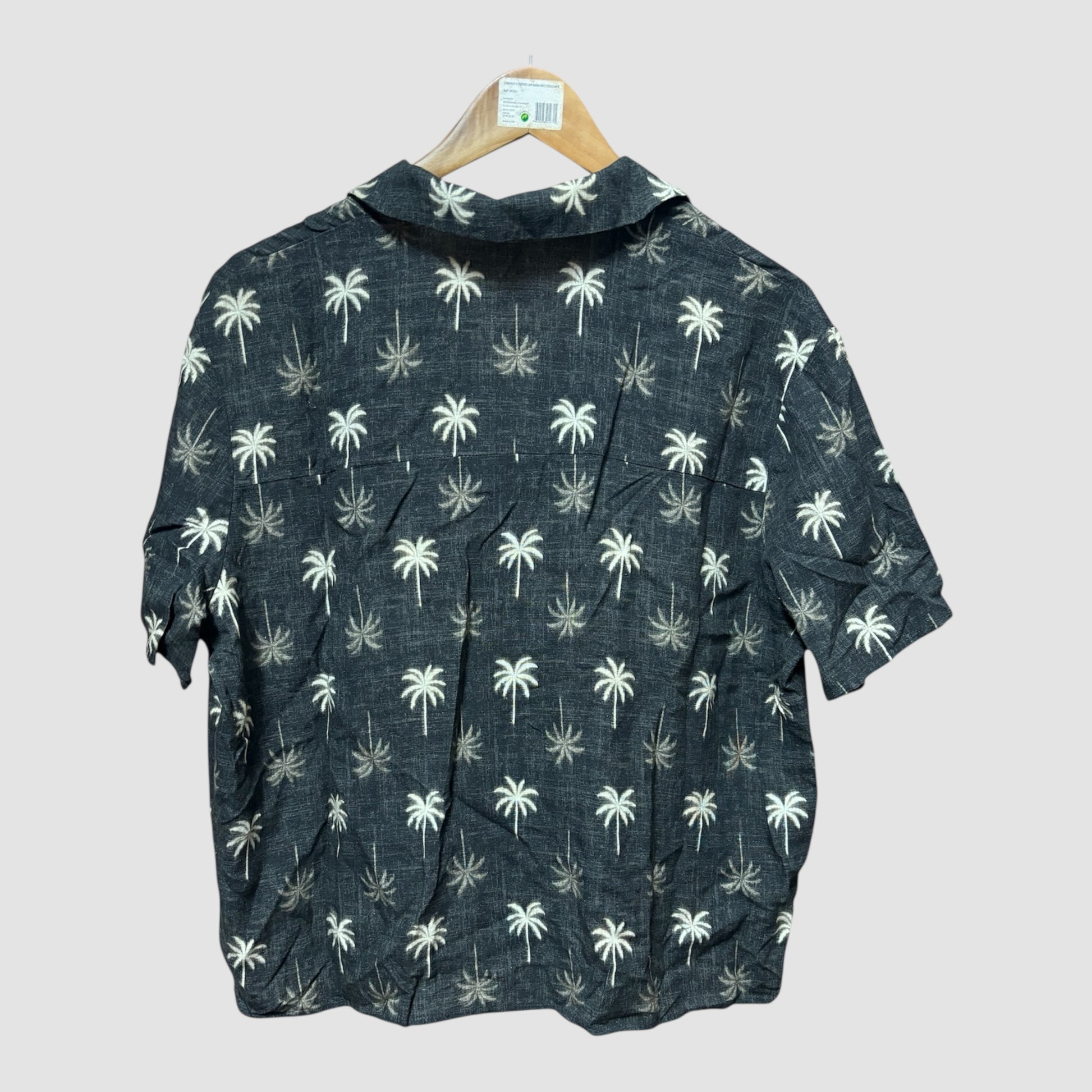 Camisa feminina com estampa de palmeiras.